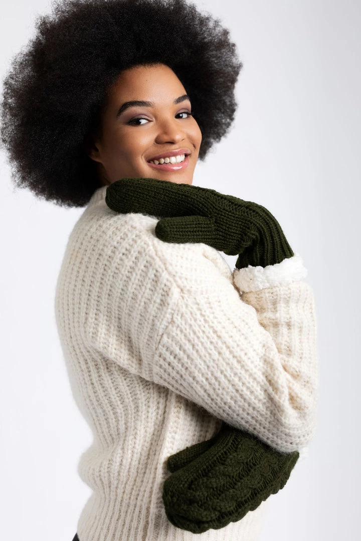 These knitted mittens have a super comfy and cozy sherpa lining that will help you effortlessly finish your look by keeping your hands warm this winter. Just Cozy mittens make a great addition to any outfit.