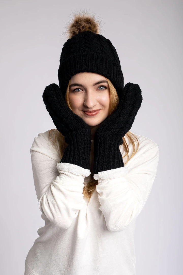 This Just Cozy set includes a Hat and a pair of Mittens. The Knitted Hats and Mittens have a fluffy super soft and comfy Sherpa lining to keep your head and hands warm. Amp up any look with a stylish and easy to wear set.